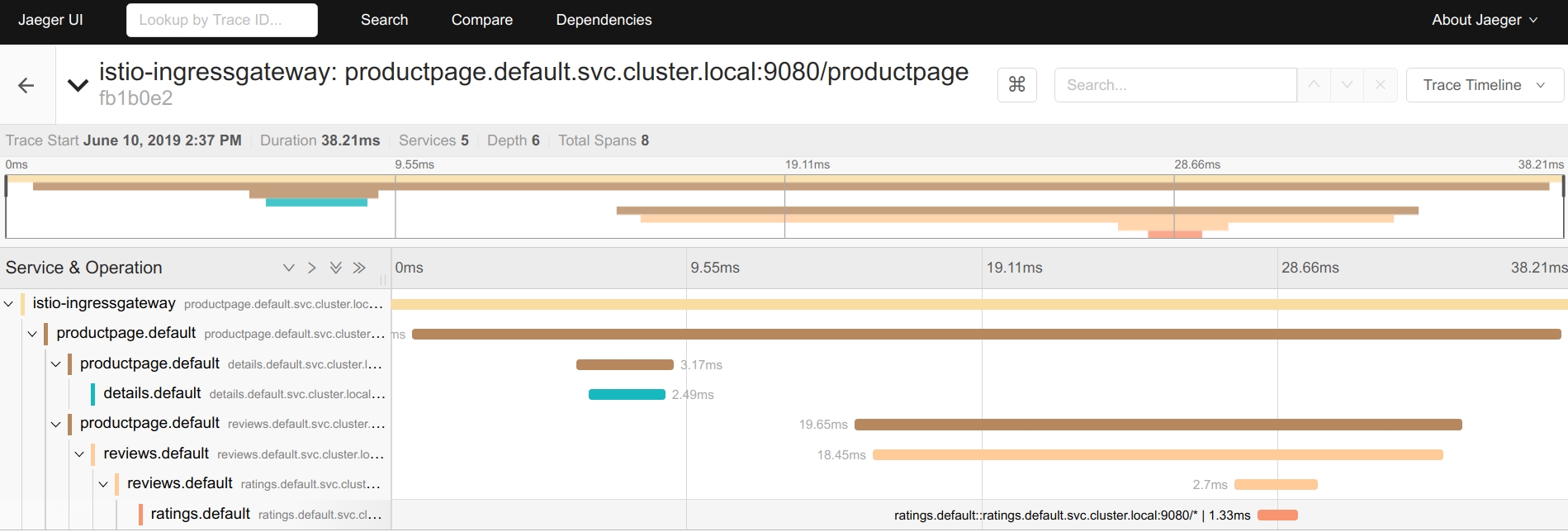 单击顶部的最新跟踪,以查看与对以下请求的最新请求相对应的详细信息/productpage: