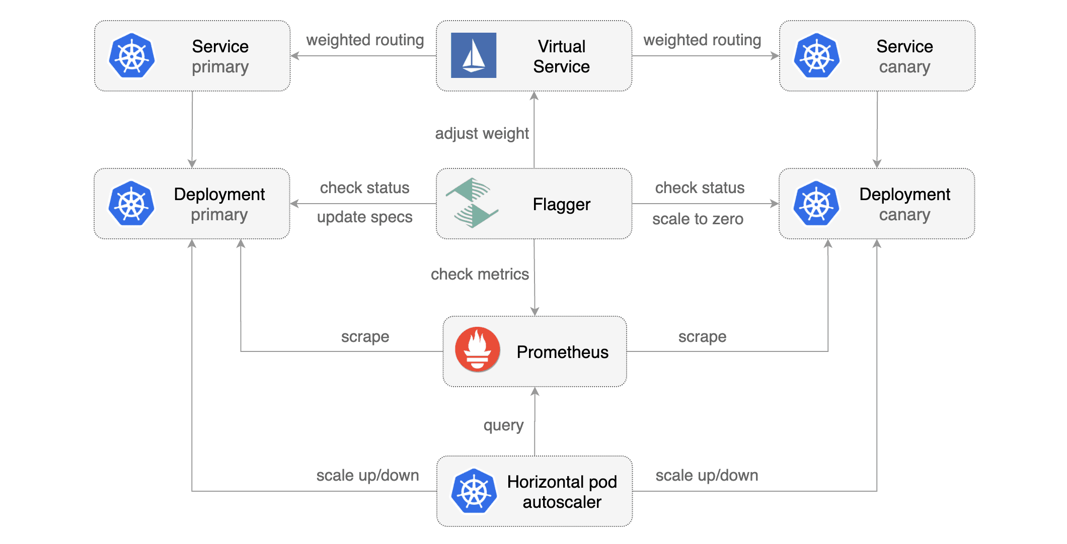 deployment.apps/podinfo-primary horizontalpodautoscaler.autoscaling/podinfo-primary service/podinfo service/podinfo-canary service/podinfo-primary destinationrule.networking.istio.io/podinfo-canary destinationrule.networking.istio.io/podinfo-primary virtualservice.networking.istio.io/podinfo